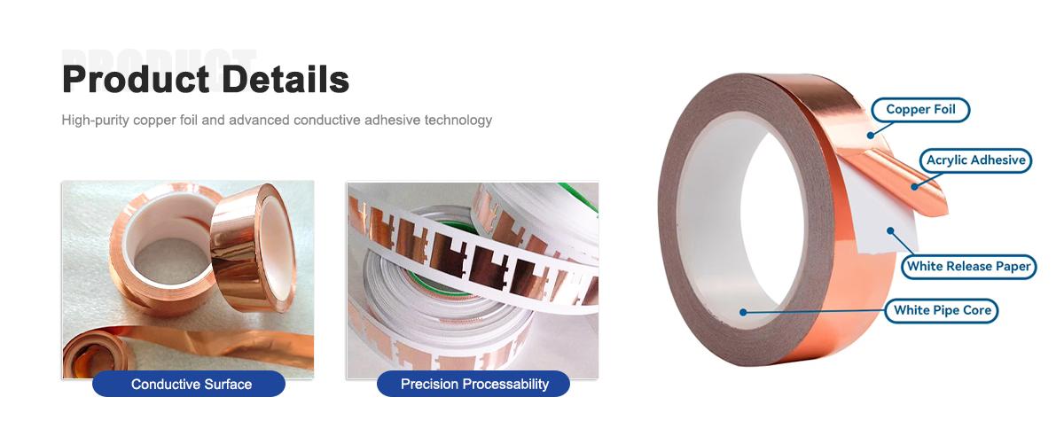 The core material, CW004A copper foil, is selected for its high electrical conductivity and mechanical durability. This ensures that the tape performs reliably in electronics, aerospace, and industrial environments where consistent grounding and shielding are critical. The copper foil is paired with a conductive acrylic adhesive that guarantees firm attachment while maintaining optimal conductivity, making it ideal for electronics assembly, PCB repair, and EMI/RFI mitigation.